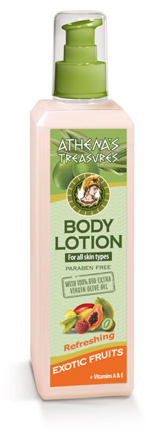 Dotek řecké přírody pro vaši pokožku. Dopřejte své pokožce osvěžující tělové mléko, navržené pro všechny typy pokožky, které spojuje sílu organického olivového oleje, výtažku z olivových listů a exotického ovoce.