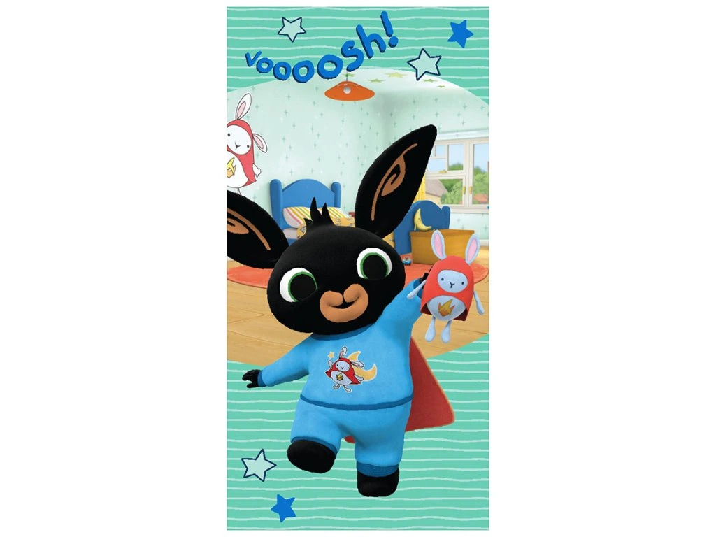 Zpříjemněte dětem každodenní koupání s měkoučkou froté osuškou s veselým motivem oblíbeného zajíčka Binga. Osuška je krásně měkká, nadýchaná a dobře saje vodu – je ideální pro použití po koupeli i na letní dovádění u vody.
