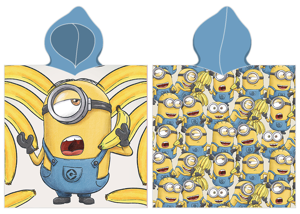 Pončo je vyrobeno z kvalitní 100% bavlny, která zaručuje skvělou savost a zároveň hebkost k dětské pokožce. Pončo je v rozměru 55×110 cm a lze jej použít jako klasickou osušku, do které se dítko po koupeli zabalí a nebo například v létě na pláži jako ochranu proti slunci. Ideální pro děti od 3 do 6 let. Žluto modré froté pončo s kapucí je určeno především chlapečkům. Na předním díle ponča je Mimoň a zadní strana je plná těchto postaviček. Přední strana ponča je z jemně střiženého froté, velurová a její hladký povrch je velice příjemný na dotek.