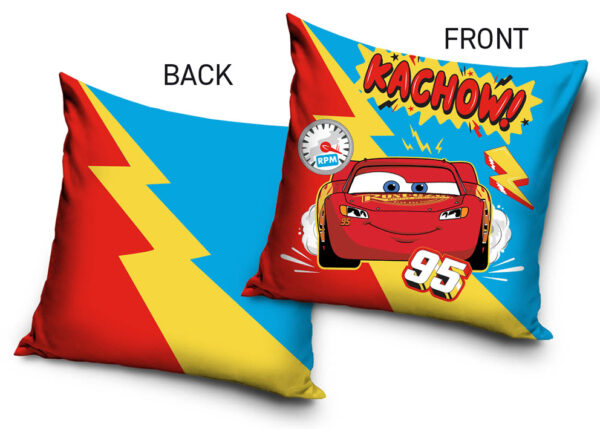 Dětský povlak na polštářek je vyrobený ze 100% polyesteru. Povlak na polštářek má rozměry 40×40 cm s gramáží 190 g/m² a je opatřen praktickým zipovým zapínáním. Povlak na polštářek je oboustranný, znamená to tedy, že z každé strany je jiný vzor. Na přední straně povláčku je červené závodní auto Blesk McQueen, které se řítí obrovskou rychlostí. I přes tuto svou rychlost však nezapomíná na věrné fanoušky, které doprovází svým epickým mrknutím „čau, čau“.