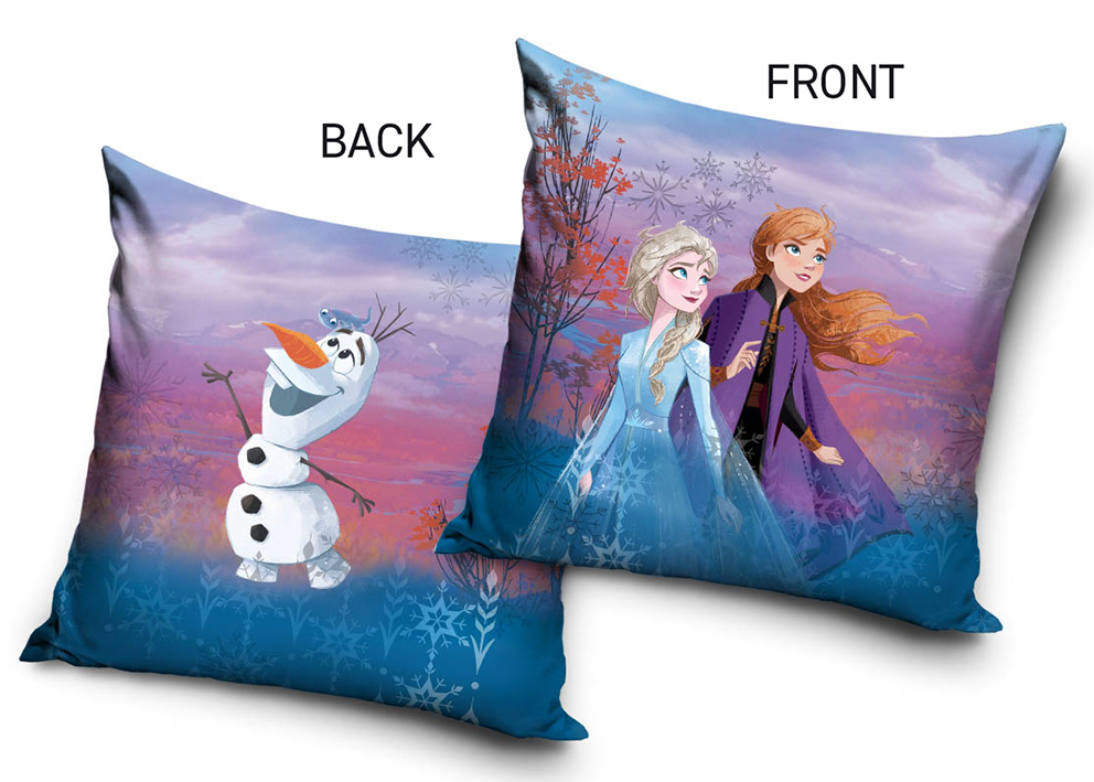 Dětský povlak na polštářek je vyrobený ze 100% polyesteru. Povlak na polštářek má rozměry 40×40 cm s gramáží 190 g/m² a je opatřen praktickým zipovým zapínáním. Povlak na polštářek je oboustranný, znamená to tedy, že z každé strany je jiný vzor. Na přední straně povláčku jsou princezny Anna a Elsa, které společně bádají po tajemství začarovaného lesa. Na zadní straně je sněhulák Olaf s malým ohnivým Salamandrem, se kterým se stali skvělými přáteli. Udělejte radost tímto povláčkem všem fanouškům překrásné pohádky Frozen, ale také milovníkům Disney příběhů.