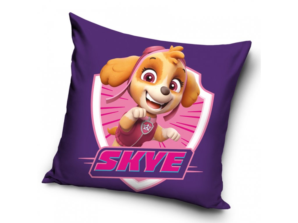 Dětský dekorační povlak na polštářek s potiskem psích kamarádů záchranářů. Na fialovém povláčku je malá fenečka Skye ve svém pilotním oblečku. Vypadá to, jako by Skye vyskakovala z růžového otvoru, které tvarem připomíná její psí známku. Spodní část fialového povláčku lemuje růžový nápis „Skye“. Tento povlak na polštářek nadchne všechny fanoušky roztomilé fenečky Skye. Povlak je krásným a praktickým doplňkem každého pokoje. Nabízíme samostatný povlak, který povlečete na polštář, který již máte doma. Je také možné si u nás koupit jednobarevný polštář, který vložíte do zakoupeného povlaku. Vneste tímto povlakem na polštářek příjemnou atmosféru do pokojíčků Vašich dětí. Povlak je vyroben ze 100% polyesteru , který je velmi měkký a heboučký. Rozměry povlaku jsou 40×40 cm a lze jej prát i v domácí pračce, vhodný pro alergiky.
