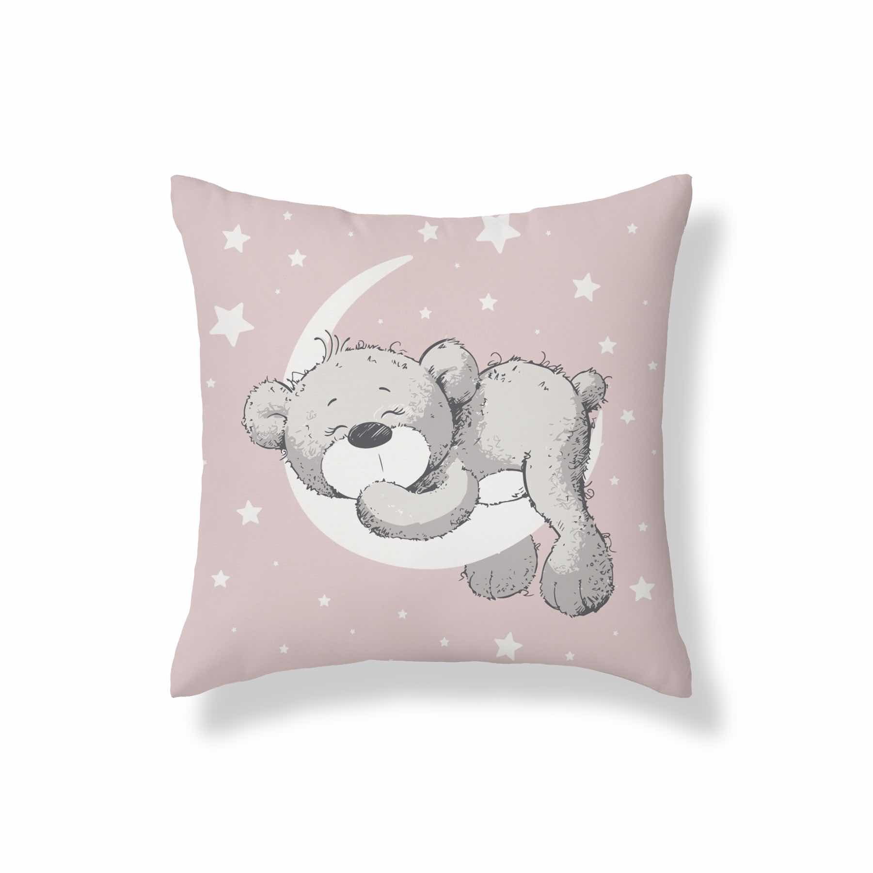 Dětský dekorační povlak na polštářek s motivem medvídka spícího na měsíčku je krásným a praktickým doplňkem každé dětské postýlky.