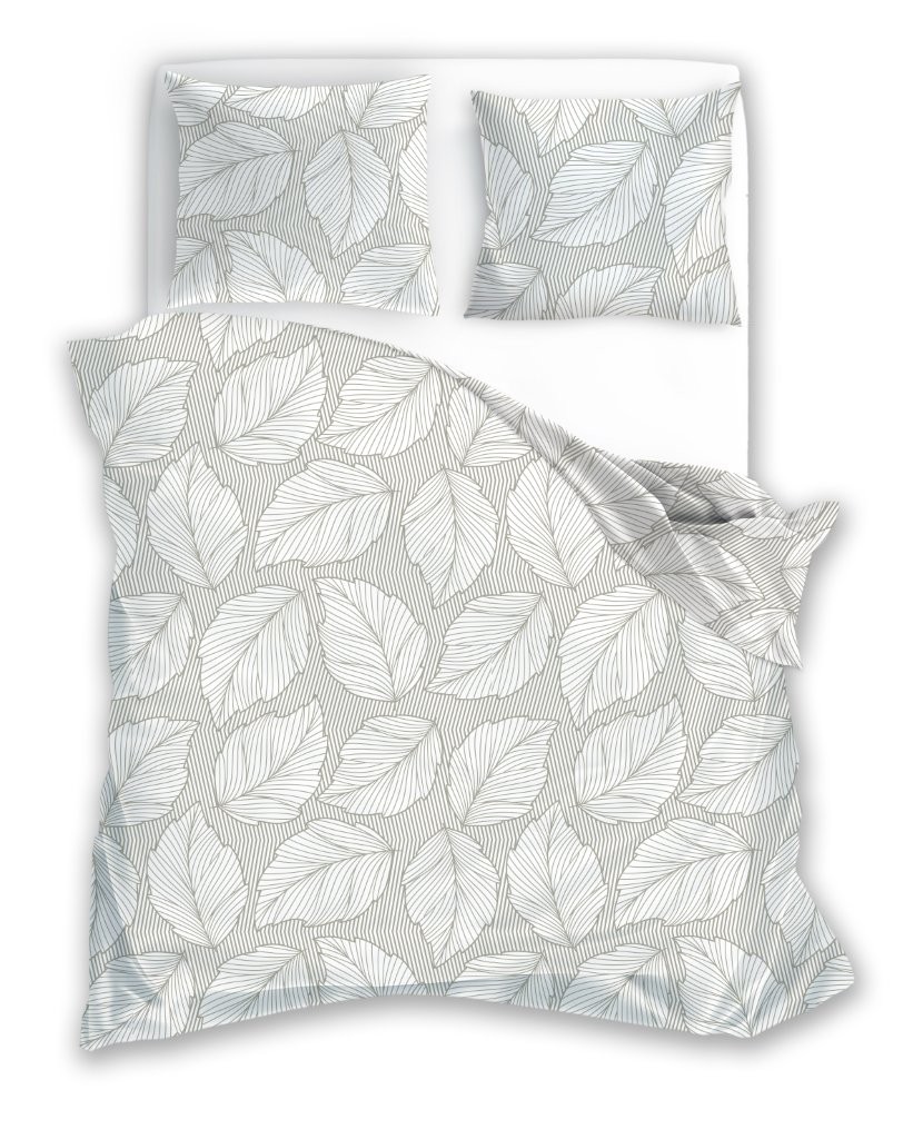 Dodejte své ložnici styl a eleganci s kvalitním bavlněným povlečením v letním stylu. Povlečení s jemnými proužky a listy na světlém podkladu v decentním tónu – hravý a energický design, který vnese do ložnice živost a styl.