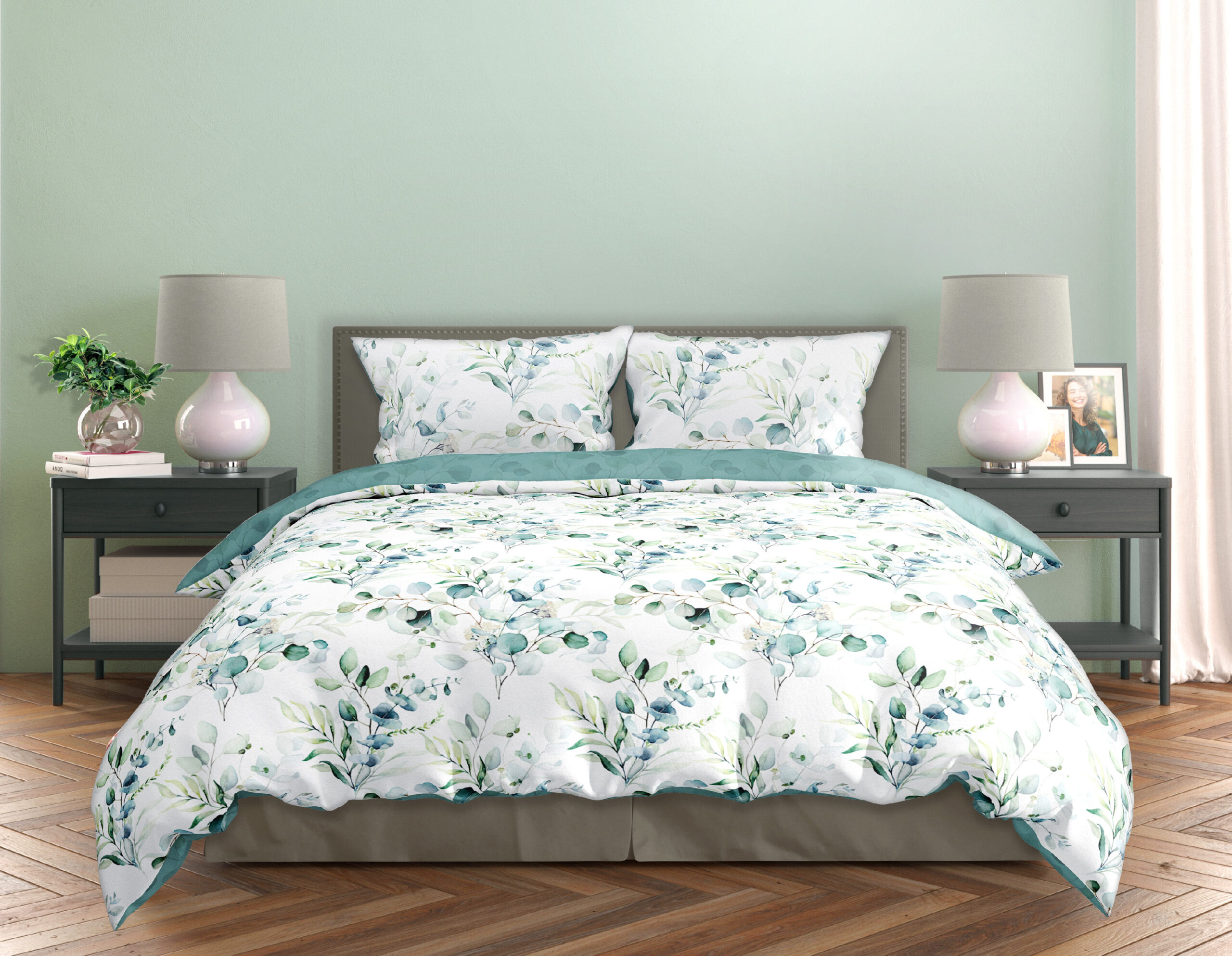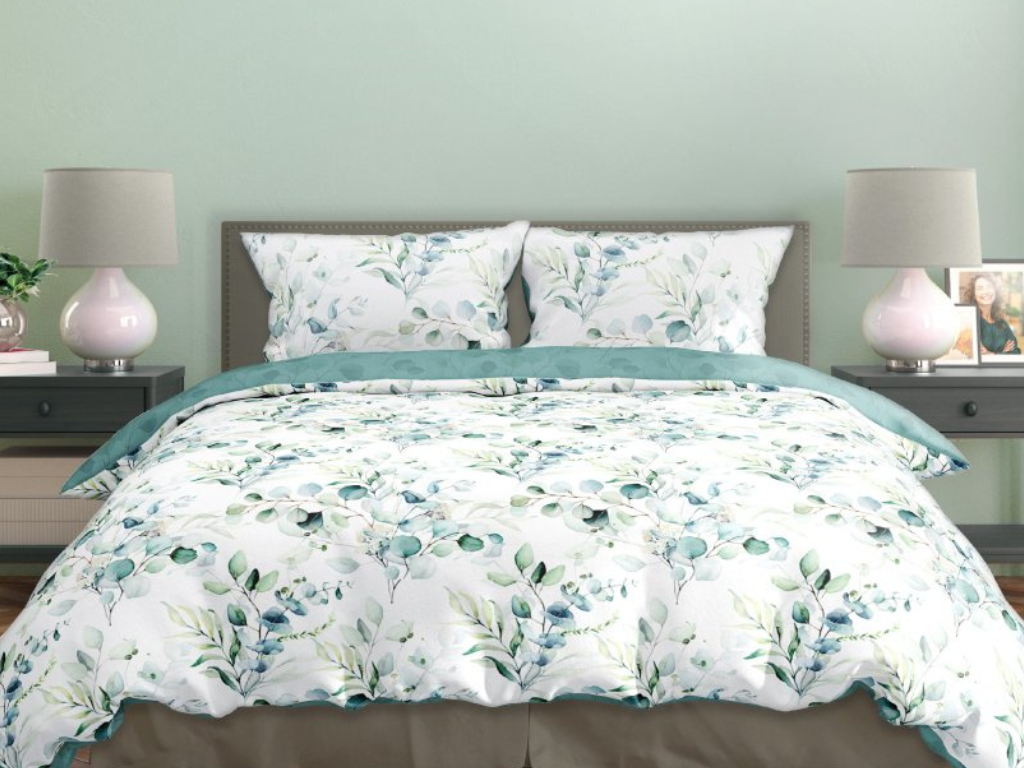 Povlečení z bavlněného saténu s něžným motivem květů je v rozměru 140×200 a 70×90 cm v moderním designu. Na přední straně ložního povlečení na bílém podkladu jsou hlavním motivem zelené listy. Opačná strana povlečení je zelená s motivem listů. Povlak na přikrývku a polštář je opatřen zipem. Kvalitní bavlna je velice hebká a příjemná na dotek. To se týká jak pevnosti látky, tak její odolnosti vůči následnému praní, díky čemuž povlečení nevybledne a barvy si zachovají svou barvu. Pokud k tomu přidáme zapínání na zip a použití originálního designu, dostaneme produkt, který splní očekávání i těch nejnáročnějších zákazníků.