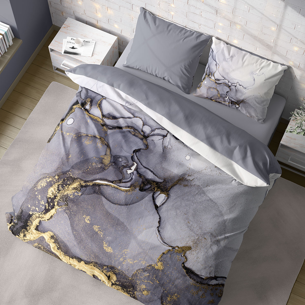 Bavlněné saténové povlečení s motivem magických minerálů. Oboustranný motiv je stejný na povlacích přikrývky i polštáře a doladí interiér vaší ložnice.