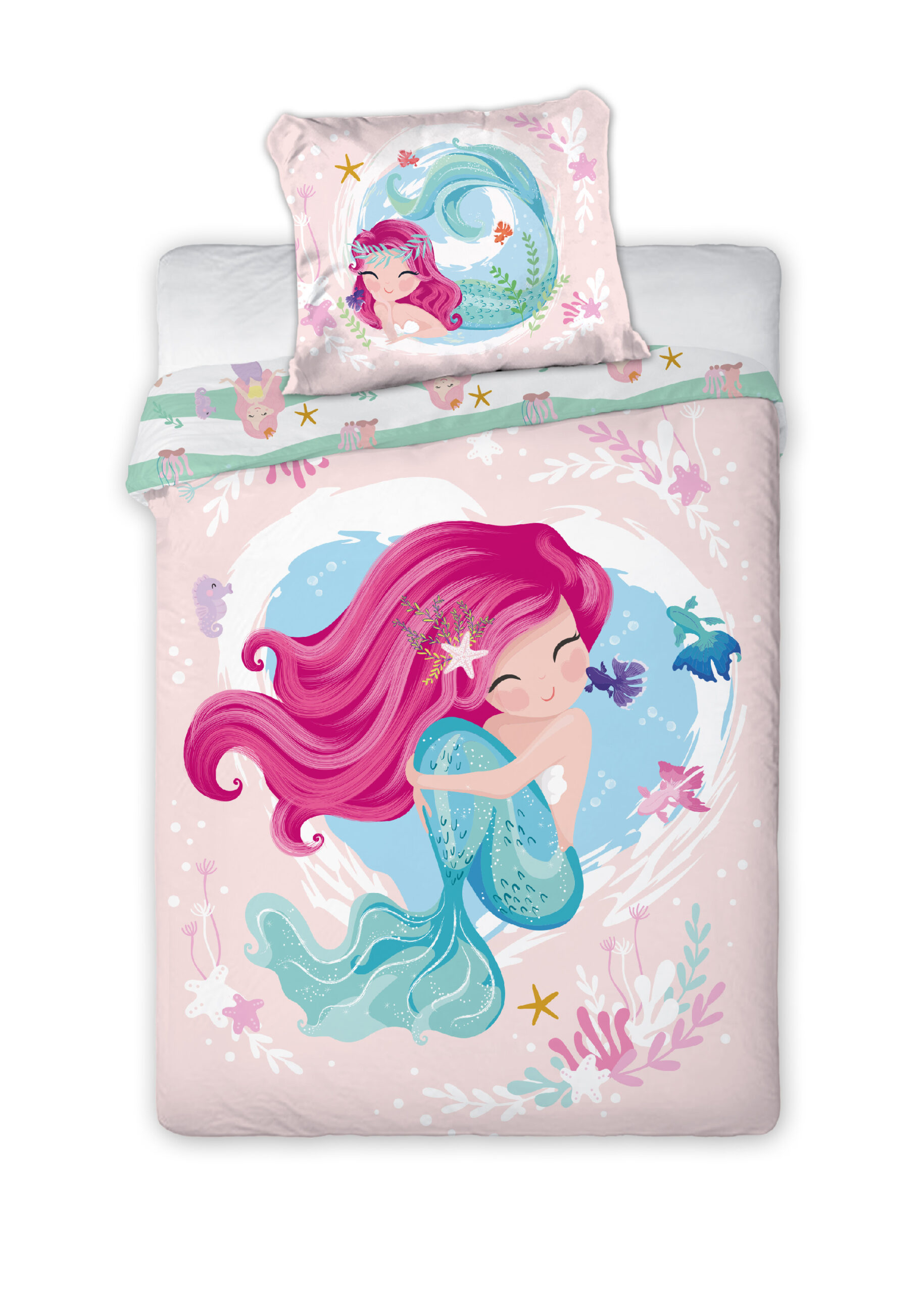 Veselý potisk je z každé strany jiný – na lícní straně kouzelná mořská víla. Na rubové straně několik obrázků mořské víly na růžovém podkladu.