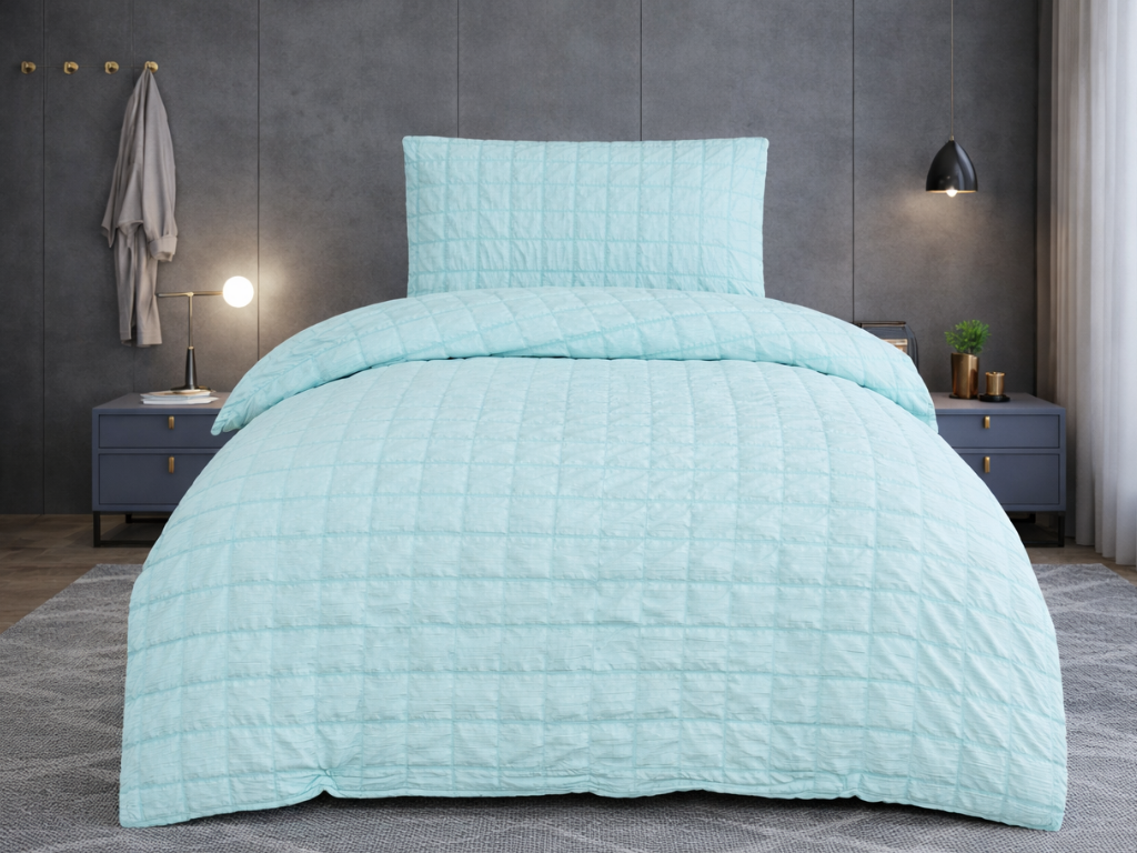 Krepové povlečení s jemným kostičkovým vzorem, který vytváří zajímavou strukturu na povrchu látky. Krepový materiál má typickou lehce zvlněnou texturu, která povlečení dodává lehkost a vzdušnost. Povlak na polštář a přikrývku je sladěn do stejného designu, který dodává celkovému vzhledu jednotnost a harmonii. Povlečení působí velmi decentně, což se dobře hodí do minimalistických a moderních interiérů.