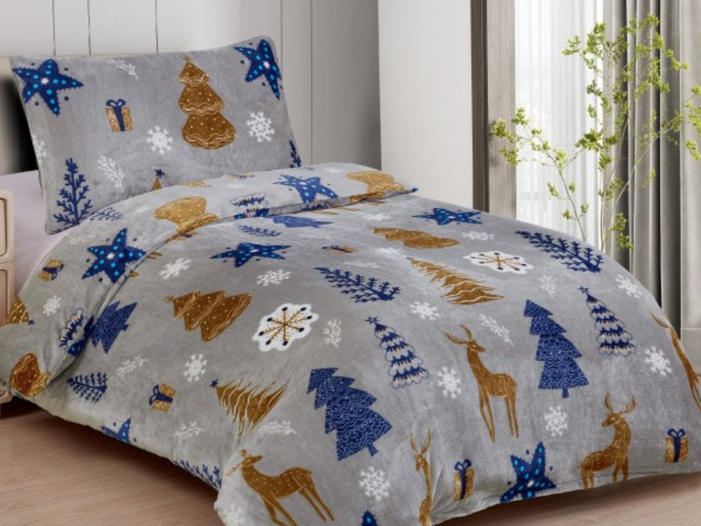 Vánoční mikroplyšové povlečení na šedém podkladu je oboustranné. souprava obsahuje povlak na peřinu a polštář ve stejném motivu.