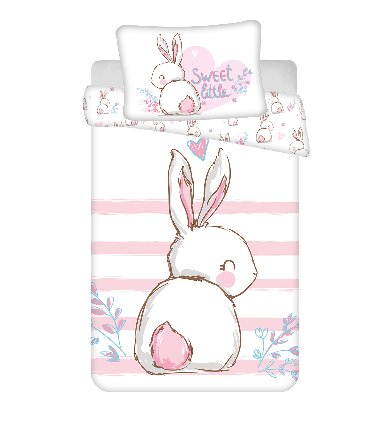V povlečení do postýlky Králíček, budou mít vaše nejmenší děti krásné sny. Dětské povlečení do postýlky o rozměru 100×135 a 40×60 je vyrobeno ze 100% bavlny, která je to nejlepší, co můžete svému dítěti dopřát. Bavlněné povlečení skvěle saje pot a zároveň je velmi prodyšné a jemné. Povlečení má oboustranný potisk. Dětské povlečení má praktické zapínání na zip.