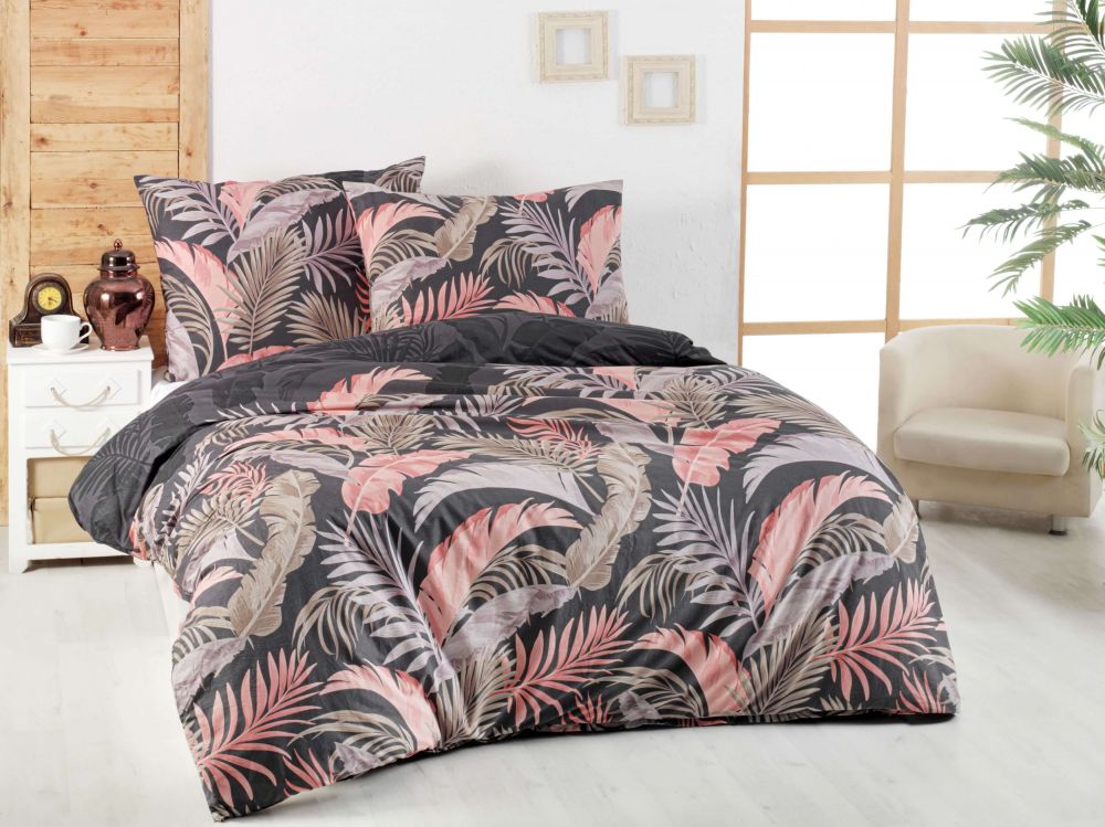 Krásné povlečení do vaší ložnice v šedé, béžové a růžové barvě. Různě barevné palmové listy dotvářejí celkový vzhled tohoto povlečení. Delux collection je známá pro velmi moderní vzory s vysokou přesností a pečlivostí českého výrobce. Kvalitní bavlna je prodyšná, savá a hebká na dotek, její pevnost zároveň zaručí dlouhou životnost. Pohodlné zapínání na zip usnadní převlékání.
