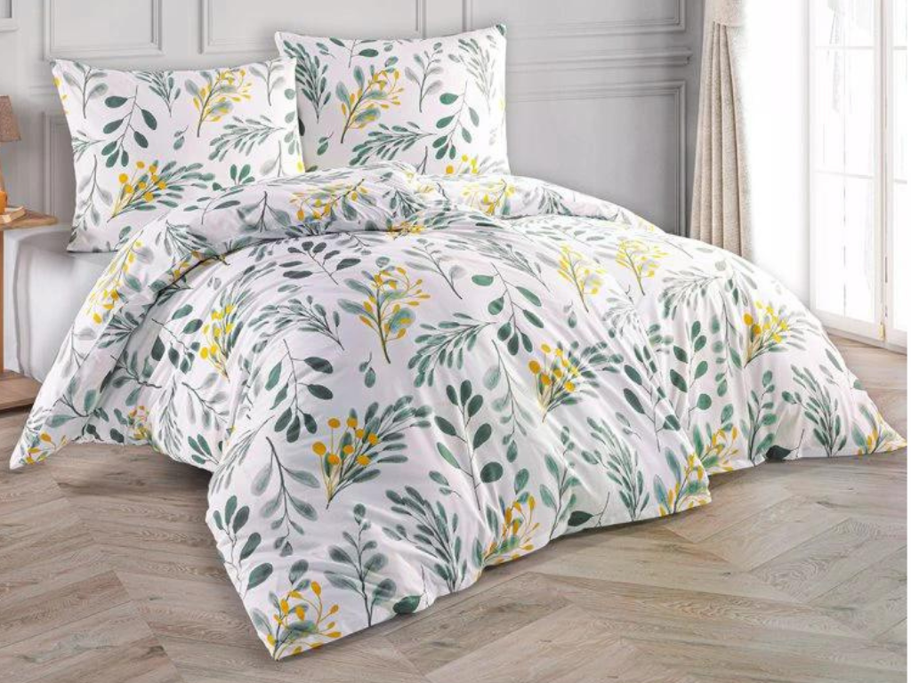 Dodejte své ložnici styl a eleganci s kvalitním bavlněným povlečením renforcé se vzorem šedých a hořčicových větviček, které jemně podtrhují jedinečnost a vkusný design této ložní soupravy.