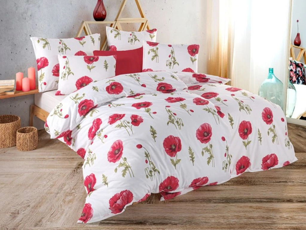 Dodejte své ložnici styl a eleganci s kvalitním bavlněným povlečením renforcé s červenými květy máku.