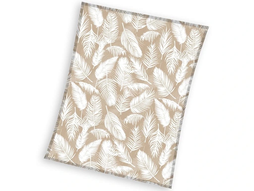 Velmi příjemná heboučká deka z mikroplyše s motivy pírek na béžové barvě. Deka je vyrobená ze 100% polyesteru v rozměru 150×200 cm. Gramáž této deky je 300 g/m2. Její povrch je velmi jemný a příjemný na omak. Ani po několika vypráních nemění barvu a nežmolkuje, je odolná vůči pomačkání, a stále si udržuje svůj tvar a vzhled. Deku lemuje dvakrát prošitý lem. Mikroplyšový materiál má jemný a sametový vzhled s krátkými vlákny, které vypadají jako korálové útesy, odtud pochází jeho název. Pokud jde o teplo, plyšové deky zadržují teplo a tvoří izolační vrstvu, což znamená, že udržují teplo blízko vašeho těla.